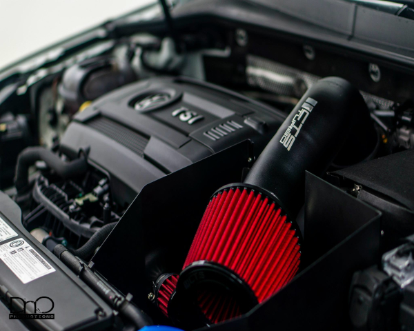 The OEM air scoop works in conjunction with our sealed airbox to seamlesly force cold air into our air intake system. Air then flows through our 3.5" high flow air filter, which utilizes an inverted cone design for maximum engine breathing. Our 3.5" CNC mandrel bent aluminum intake pipe allows for smooth entry of cold air directly into the the engine, minimizing turbulence from unnecessary connections. All of the components included in the CTS air intake system work flawlessly together to provide increased horsepower and torque throughout the entire power band and an aggressive race inspired sound.